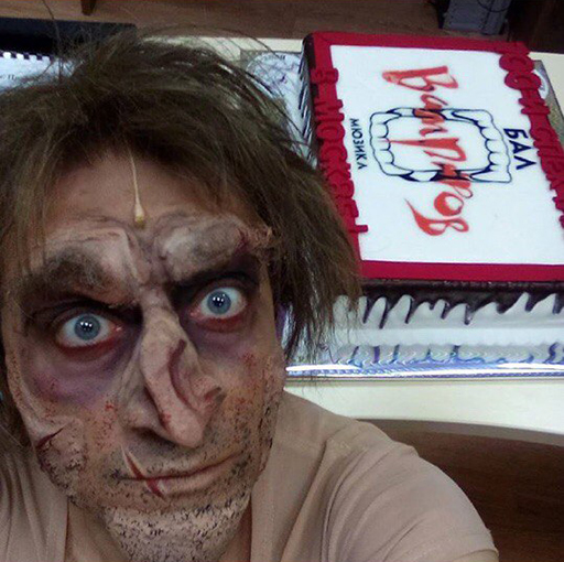 На днях в Москве состоялся 100-й показ захватывающего с первых секунд, веселящего и будоражащего мюзикла "Бал Вампиров". Поэтому случаю мы с нашими партнёрами студией "Стейдж Энтертеймент" приготовили сладкий сюрприз для актёров труппы - торт с логотипом "Зубастого Хита". Актёры очень обрадовались и даже, не снимая грима, начали входить в сладкий образ закулисного действия)