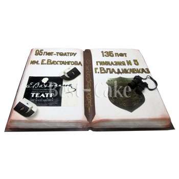 Также нашей кондитерской доверили изготовление торта в виде раскрытой книги с афишей и театральными масками на 95 - летний юбилей "Театра им.Е.Вахтангова".