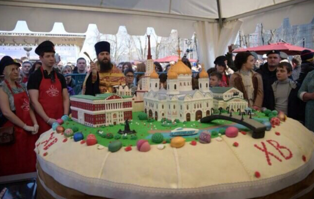 Светлая Пасха 2018 - в этот день в центре Москвы на Пушкинской площади москвичи могли попробовать гигантский пасхальный торт с четырьмя архитектурными символами столицы, выполненные в виде отдельных тортов: Храма Христа Спасителя, Большого театра, Московского университета имени М.В. Ломоносова и исторического здания Мэрии Москвы. Некоторые из этих тортов размещены на нашем сайте. Общий вес кондитерского шедевра около тонны. Христос Воскресе!!!